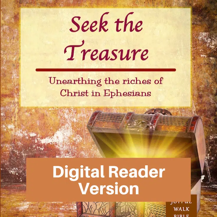 Are you looking for something to guarantee successful living? On what are you relying for success in your life? What kind of treasure are you putting in your spiritual treasure chest? Humans seek anything that will satisfy the spiritual hunger in our souls and “guarantee” successful living. God intended that hunger to be filled with Himself. Yet, instead of relying on God, we shop around at different sources to see what we want to put in our treasure chest. Will it work to make you lucky, solve your problem, or make your soul happy? There are so many things out there on the internet or in social media that we can try. These can be powerful influences on us as women, but they are substitutes for the real thing. They lead us to seeking the wrong treasure. Seek the Treasure is a short and easy study of the book of Ephesians. In this study, you will discover all the amazing treasure you have in Jesus Christ. Everything we already have in Christ is more powerful and valuable for successful living than any of those substitutes. The problem is that we have to recognize that substitute treasure is worthless. Through these 8 simple lessons with matching podcasts, you will learn how to recognize and get rid of all the substitute treasure that is worthless and cling to your treasure in Christ alone. Where your treasure is, that’s where the desires of your heart will be. In Seek the Treasure, you will unearth the riches of Christ in Ephesians. See that your treasure in Christ is powerful and valuable enough for you to live successfully in this world. Don’t wait! Get Seek the Treasure and unearth your riches today.